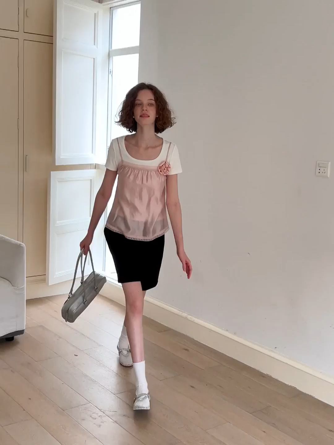 Haut en couches transparentes avec appliqué floral et bord en dentelle