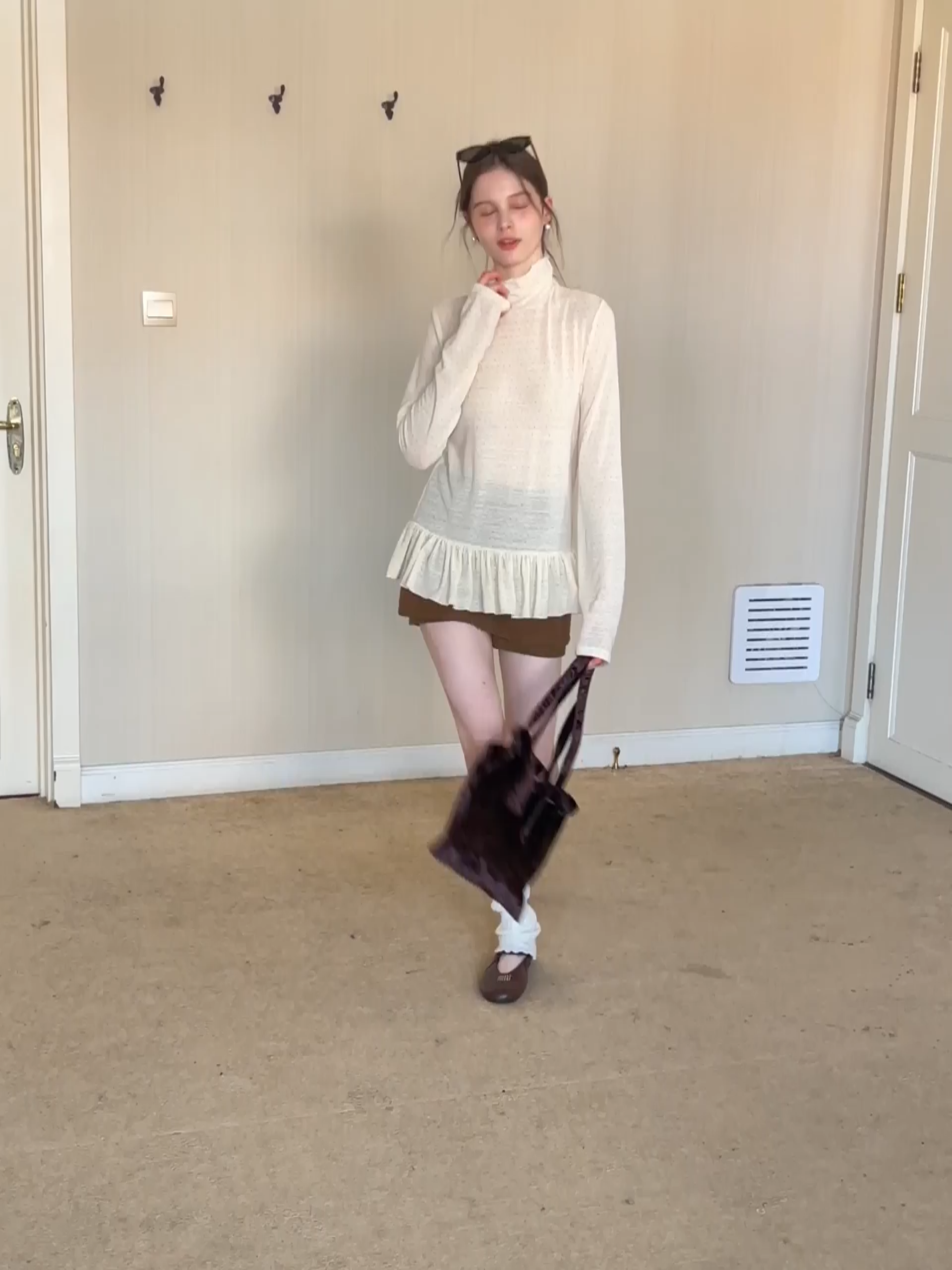 baju lengan panjang bertitik bunga dengan kelim ruffle