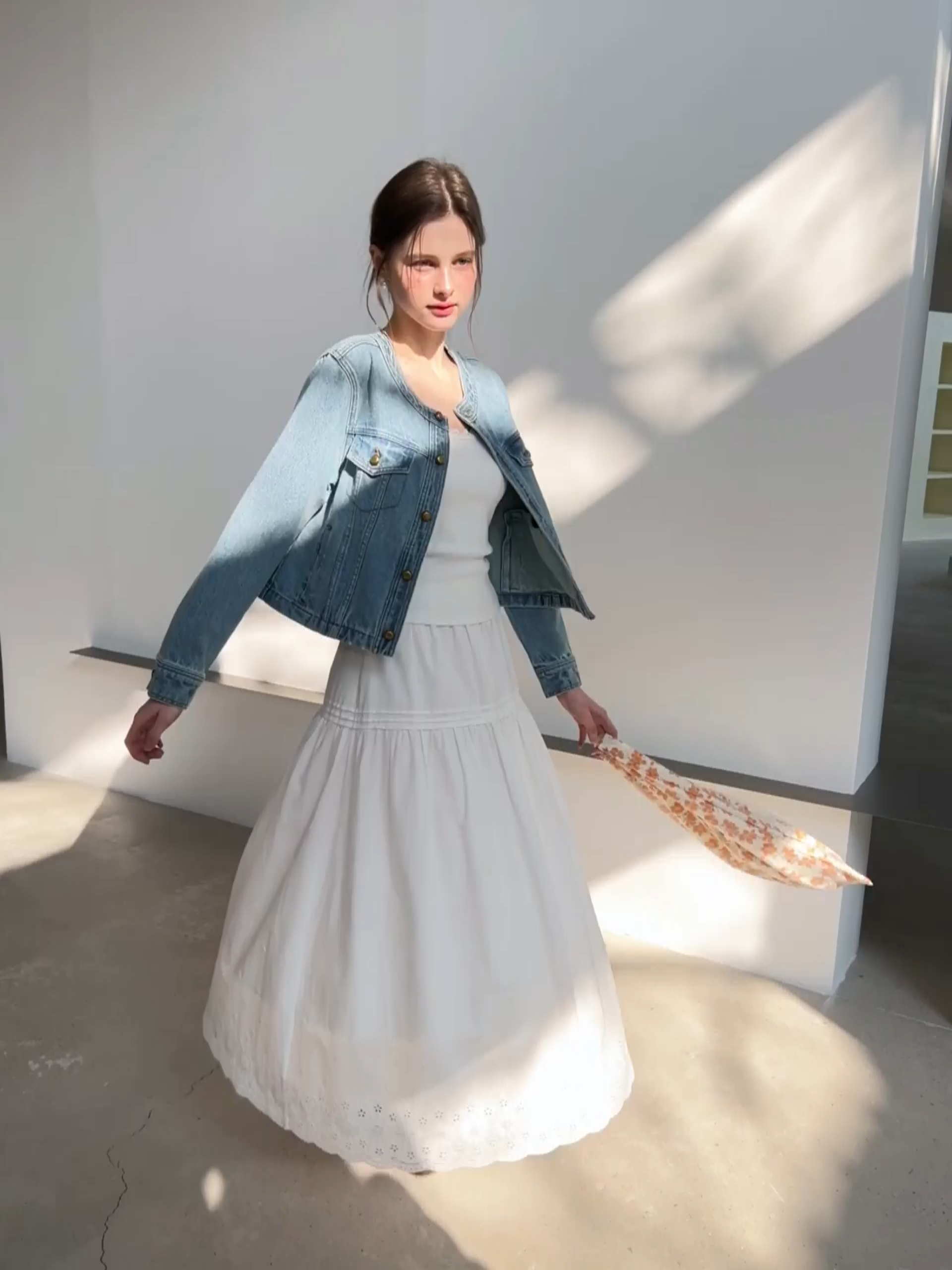 Collarless Cropped Denim Jacket