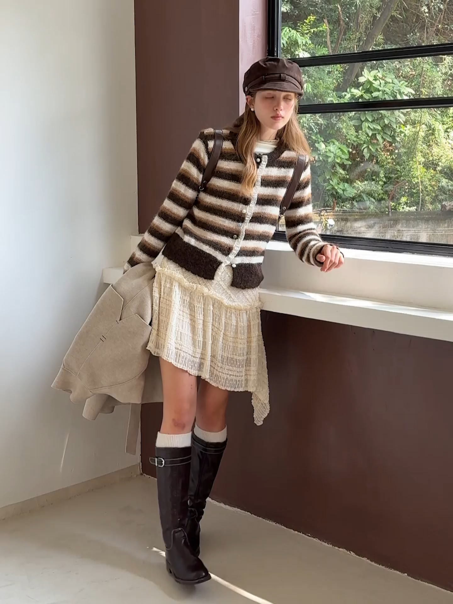 Vintage Striped Knit Cardigan for Women Casual