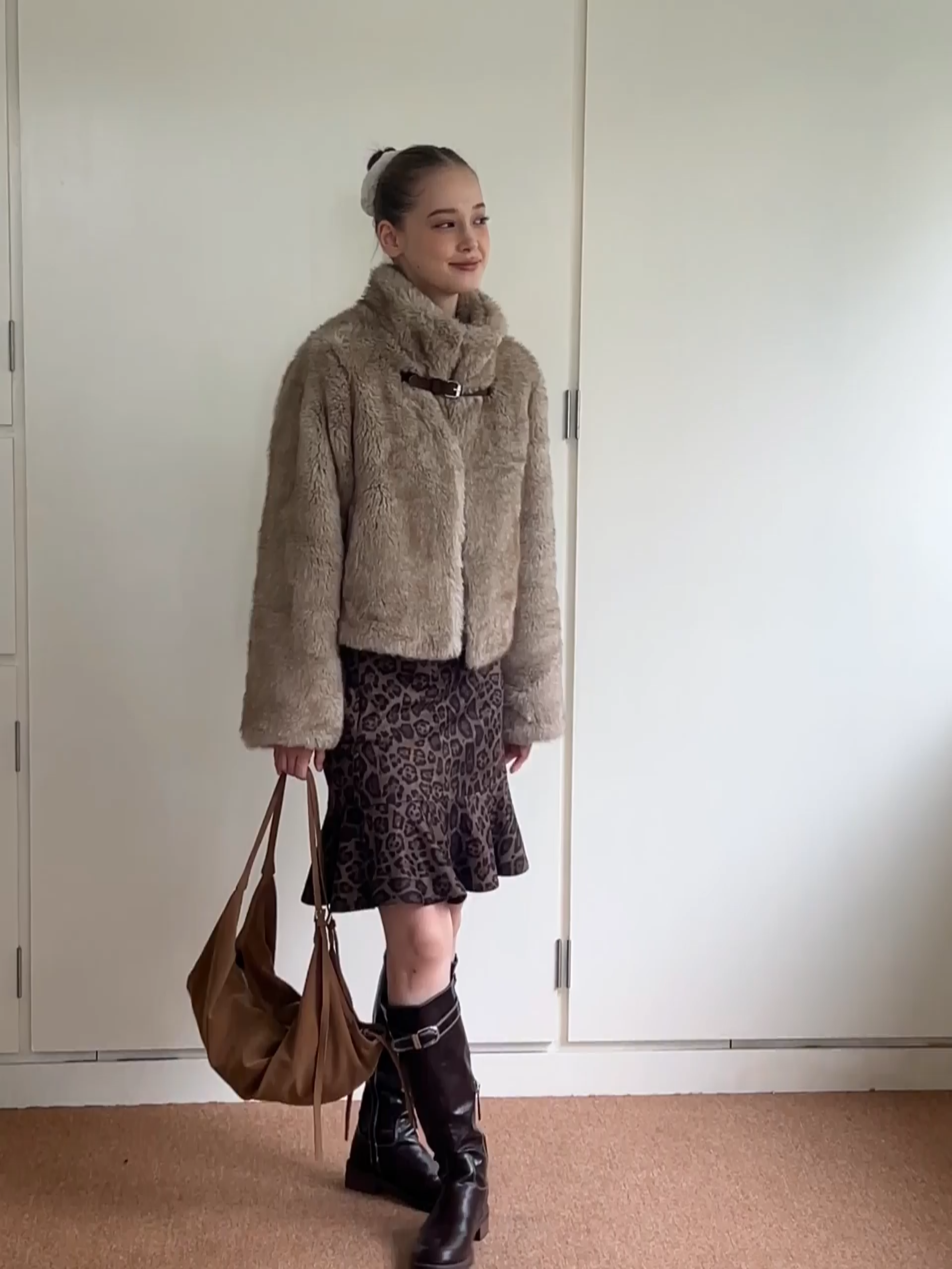 Women Faux Fur Cropped Jacket with Buckle Closure