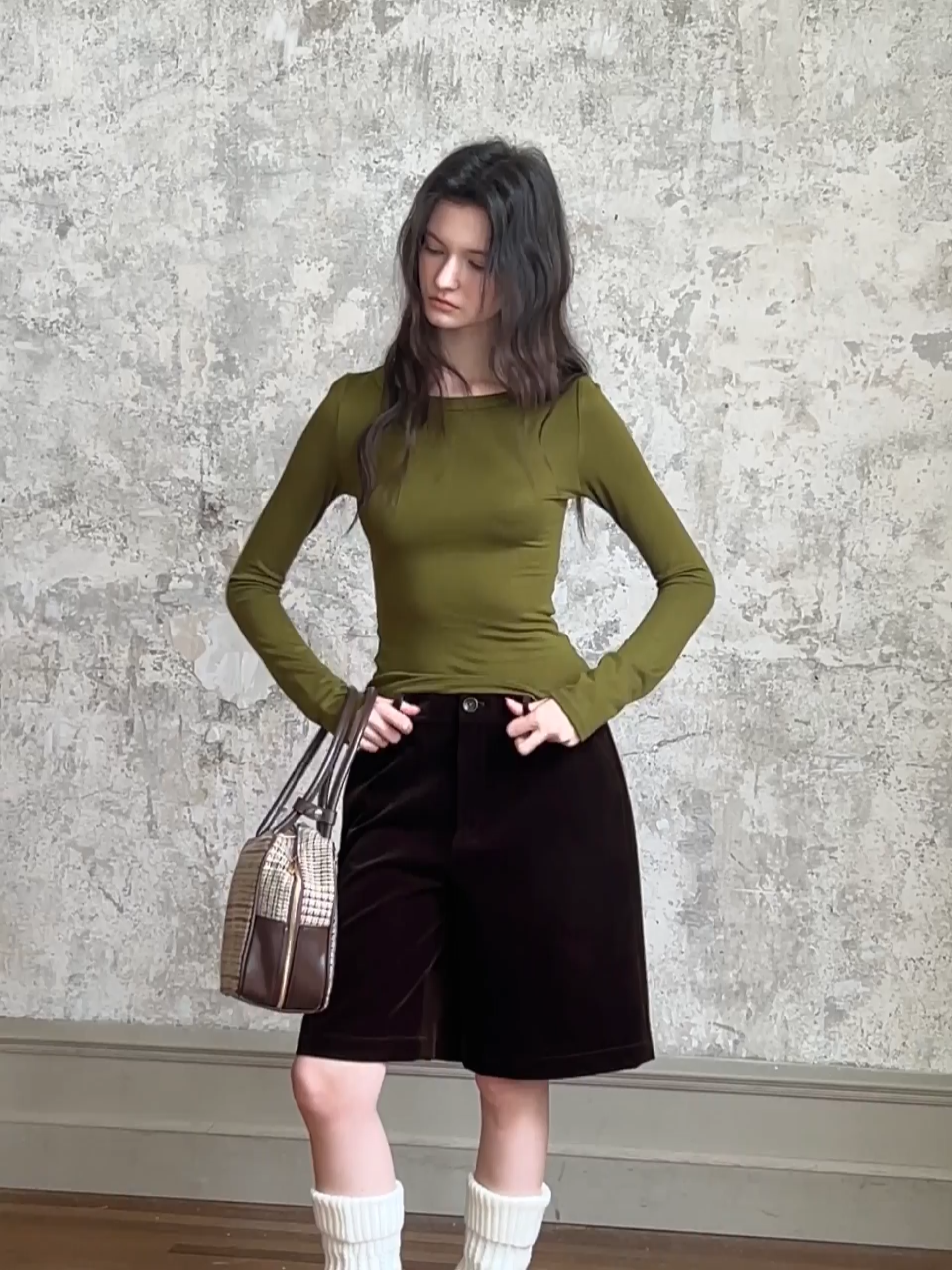 Women Stylish Corduroy Brown Shorts with Button Detail